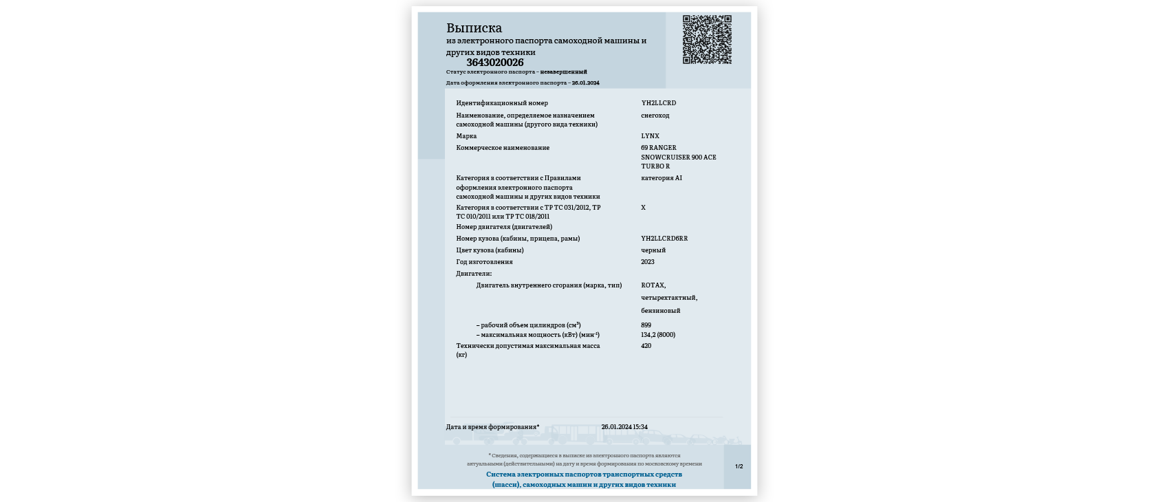 Электронный паспорт самоходной машины, образец